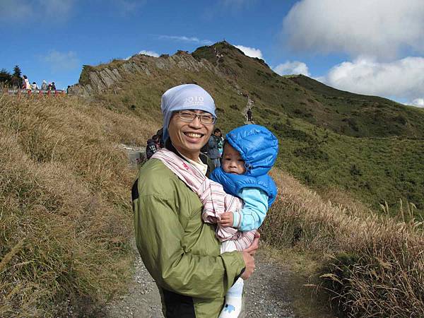 上次是媽媽揹你上山,這次就換爸爸揹啦!洋洋出發的狀況感覺還好。