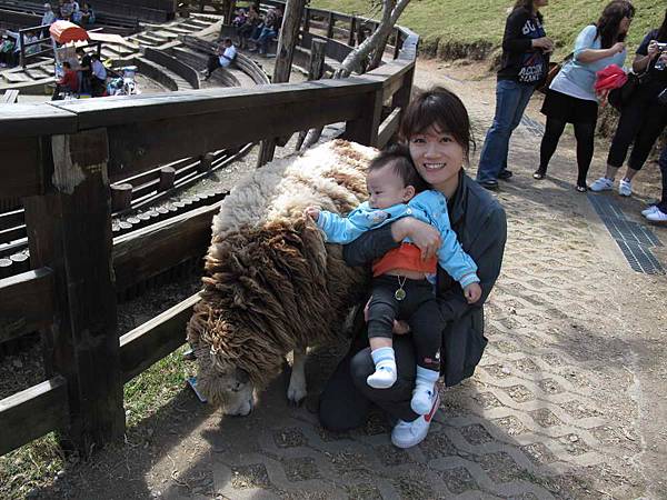 洋洋很喜歡動物,家裡的喵喵不給他抓。在這裡抓到羊咩咩,超開心的