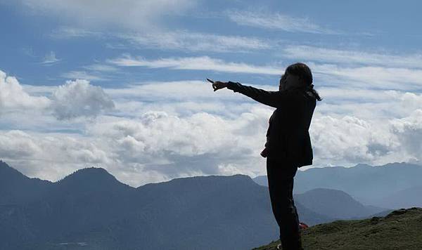 媽媽指著遠方,看方向是奇萊山,告訴洋洋:「下次我們要去那座山哦!」 洋洋:「