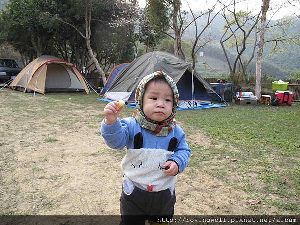 搭好,總算可以休息了,洋洋在這過程中,就在這塊空地上一個人亂亂逛,看他超開心的,我們也就隨他去了!