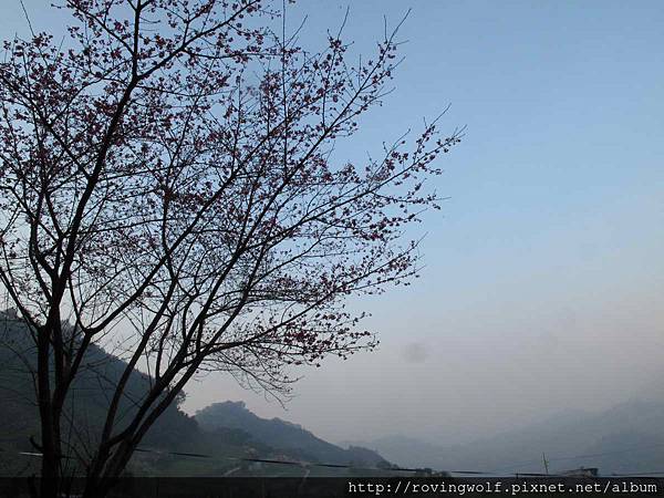 在營地附近逛逛,發現一棵櫻花樹,開得燦爛!