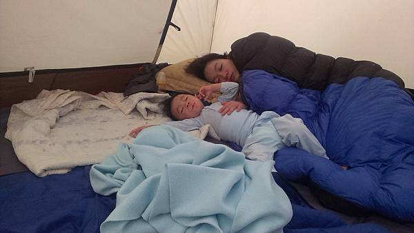 四、防踢被:我們準備二件,一件棉質、一件是羽毛被。洋洋睡覺實在翻滾得很厲害,有一次半夜找不到他,驚醒後在帳篷門口發現他。所以蓋什麼被子都沒用,蓋也是輔助功能,真正保暖還是要防踢被。謝謝阿清嫂的介紹,讓我們買到羽毛填充的防踢被(大倫,台中新光三越專櫃),很貴,比我的睡袋還貴,但值得啦!