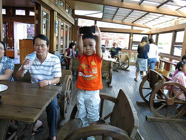我們家這個小朋友看大家都拿著手機在拍照,他也跟外公拿了手機有樣學樣……看這邊‧‧‧‧