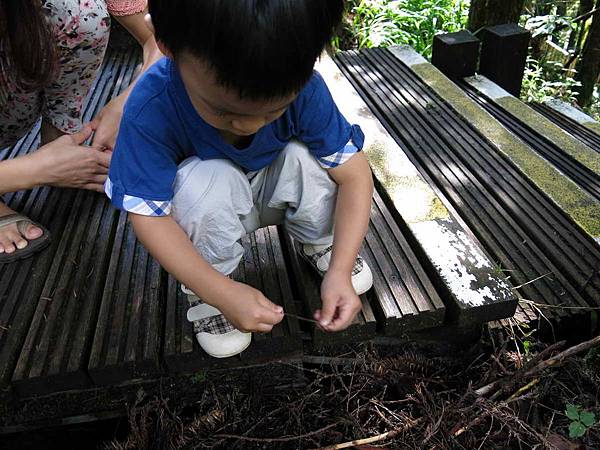 後來洋洋對這個長得像蜈蚣的落葉產生興趣,一直以為是蟲蟲。