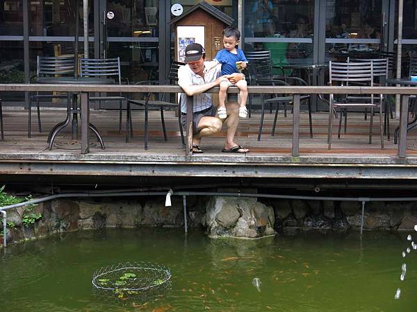 剛餵魚沒餵完的飼料,這裡還能派上用場,換外公出馬!