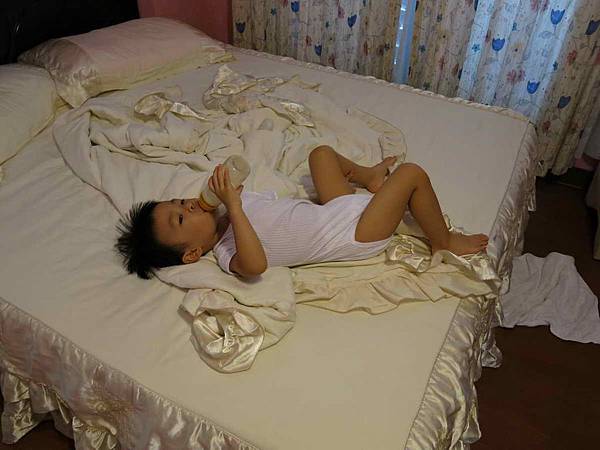 一早起來洋洋有點花,黏著媽媽讓洋洋媽動彈不得。